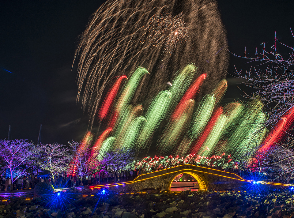 光影盛宴,璀璨太湖。太湖黿頭渚景區連續10余年被評為“全國最美賞月地”,離不開(kāi)每年中秋節期間的燈光數字煙花秀。銀達利煙花團隊將中華傳統文化與現代科技進(jìn)行融合,成功打造了璀璨煙花與皓月同在,音樂(lè )與激光共舞的唯美中秋夜,更有船上看煙花,人在畫(huà)中游的完美意境美。據黿頭渚景區統計,節慶期間的焰火秀吸引了來(lái)自上海、蘇州、南京等地及周邊地區約120萬(wàn)觀(guān)眾,創(chuàng )造年度游客人數的最高峰值,為景區創(chuàng )造了非??捎^(guān)的經(jīng)濟收入。