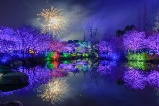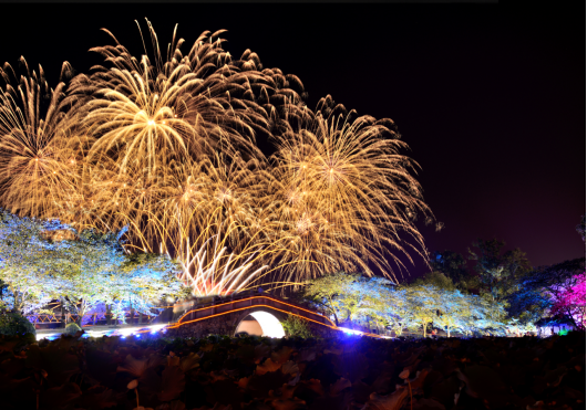 黿頭渚櫻花谷,十里芳徑,櫻花與翠柳兩相依;長(cháng)春橋,是最絢麗多彩的賞櫻地,景區在春賞櫻花活動(dòng)的基礎上尋求突破,銀達利團隊攜手黿頭渚景區引入源自日本“夜賞櫻花”游園會(huì )活動(dòng),將燈光與焰火結合,將游園活動(dòng)從白天延伸到夜晚,加入了豐富的燈光,藝術(shù)焰火秀表演,豐富游客的視覺(jué)感觀(guān)體驗,打造沉浸式的“夜游”體驗。