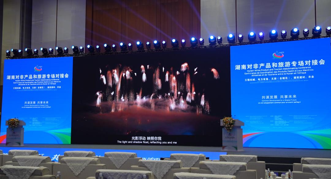 7月1日上午,長(cháng)沙國際會(huì )議中心,《雙語(yǔ)版|一河詩(shī)畫(huà)滿(mǎn)城煙花》《璀璨千年綻放未來(lái)》等暖場(chǎng)視頻,在湖南對非產(chǎn)品和旅游專(zhuān)場(chǎng)對接會(huì )現場(chǎng)播出。